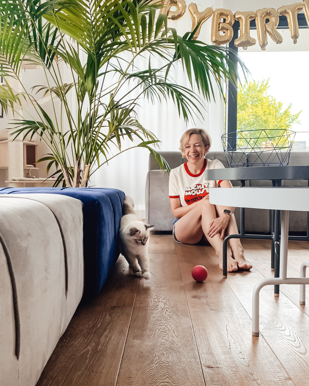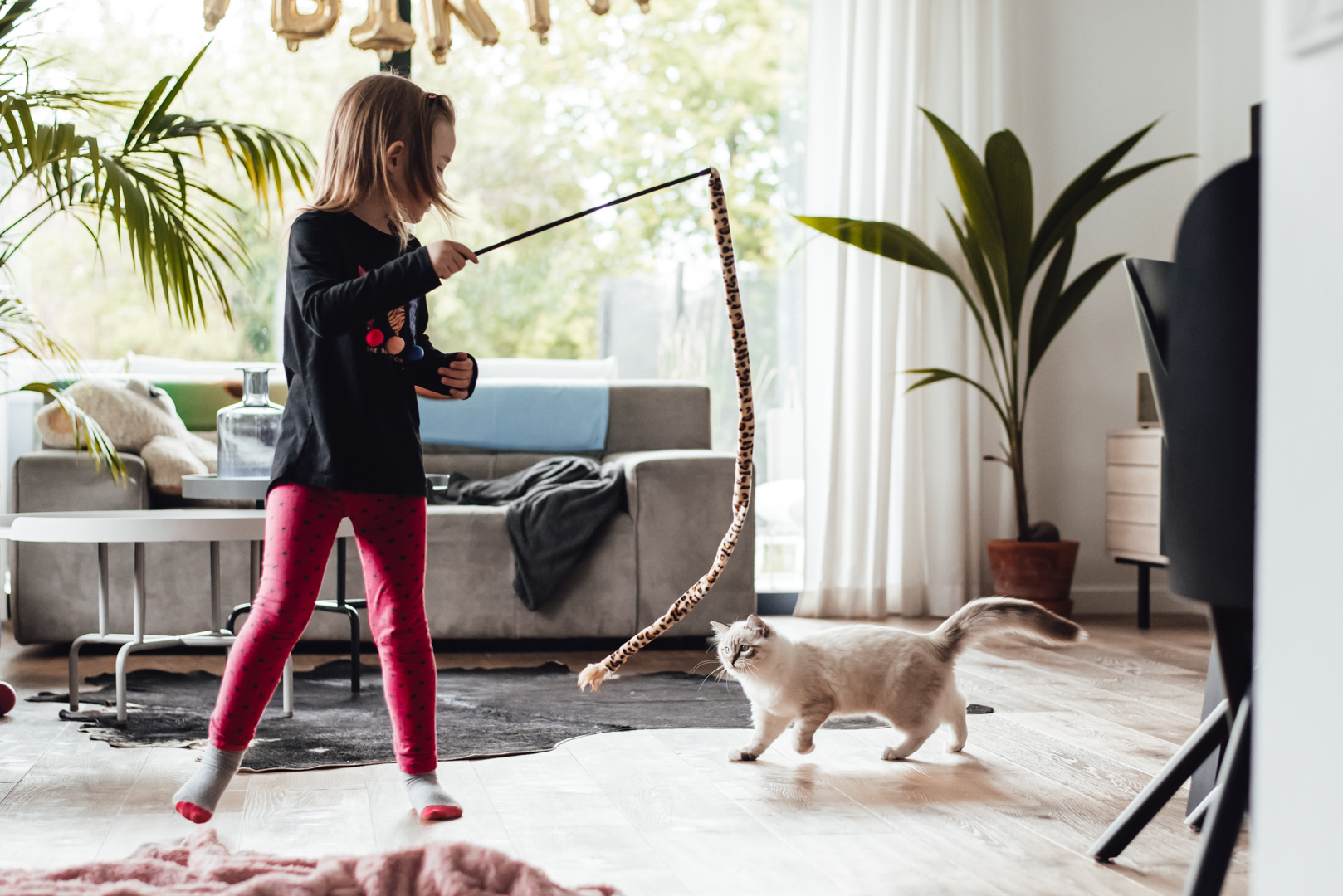 jeśli nie chcemy zniszczeń, musimy poświęcić naszemu kotu czas. Czyli go wybawić, żeby nie skakał po całym domu w poszukiwaniu wrażeń. Całe szczęście to nie jest dziecko, które potrzebuje uwagi non stop. Naszej kocie wystarczą 2-3 zabawy w ciągu dnia po 30 minut, po których jest grzeczna, spokojna i jedyne, o czym marzy, to się przytulić albo zasnąć (albo to i to :)).