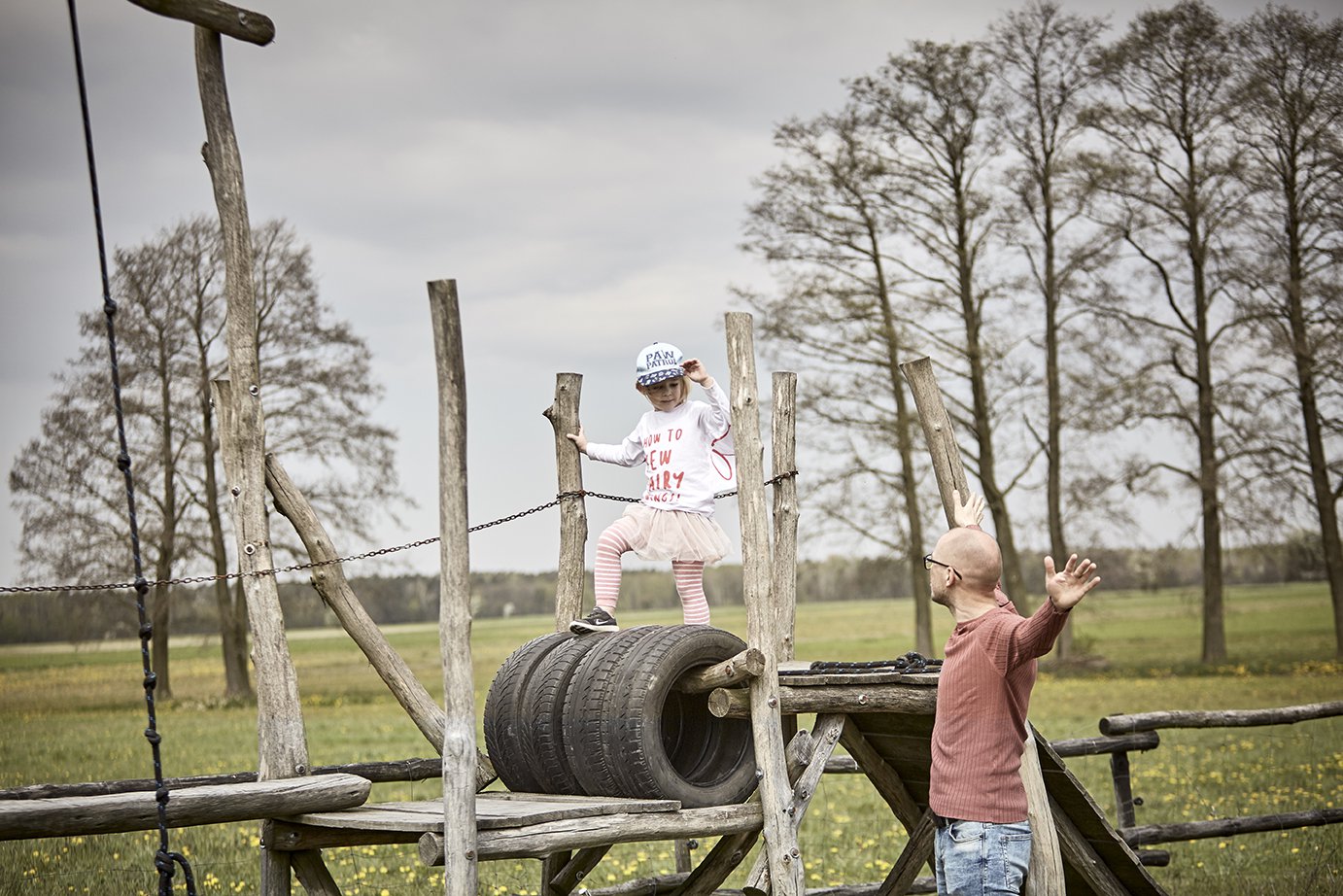 W Siedlisku Leluja zwierzaki to nie jedyna atrakcja. Zaraz przy wejściu maluchy wita domek na drzewie. A dalej jest tylko lepiej! Plac zabaw z torem przeszkód; staw, w którym można pływać (wpław albo na tratwie); błotna zagroda. Moim dzieciakom najbardziej spodobała się stodoła, w której można spać! Ta stodoła to równocześnie wielka salka zabaw, gdzie zamiast basenu z kuleczkami jest basen z sianem. A skakać można do niego prosto z huśtawek!