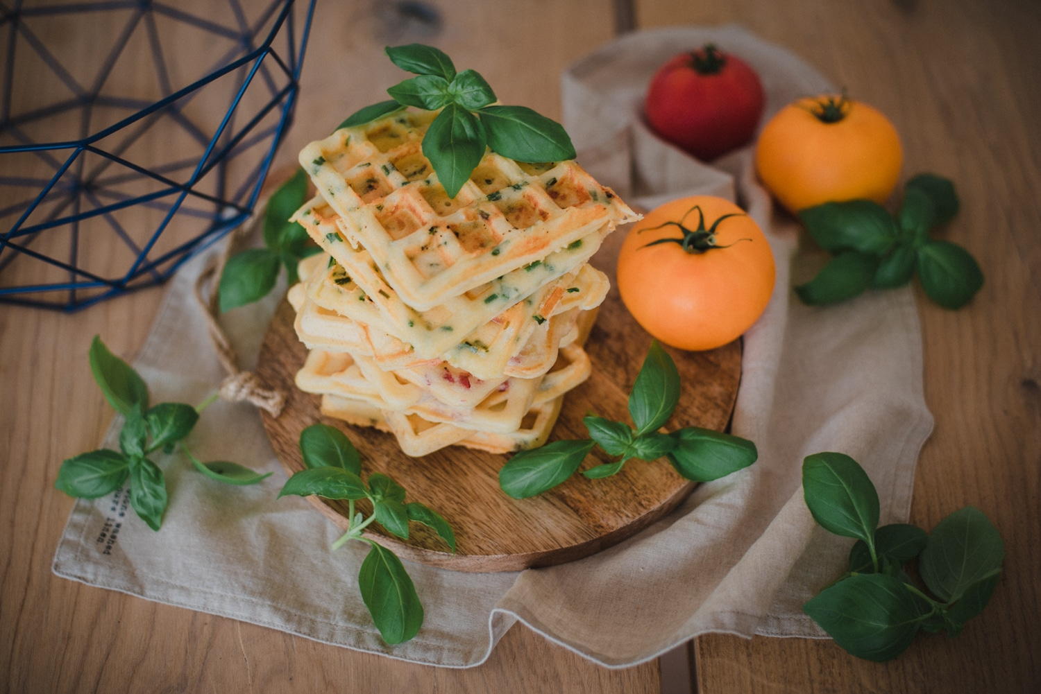 6. Ciasto nałóż na gofrownicę i zdejmij po kilku minutach. Ser powinien się stopić, a cebula/szczypiorek zarumienić.
