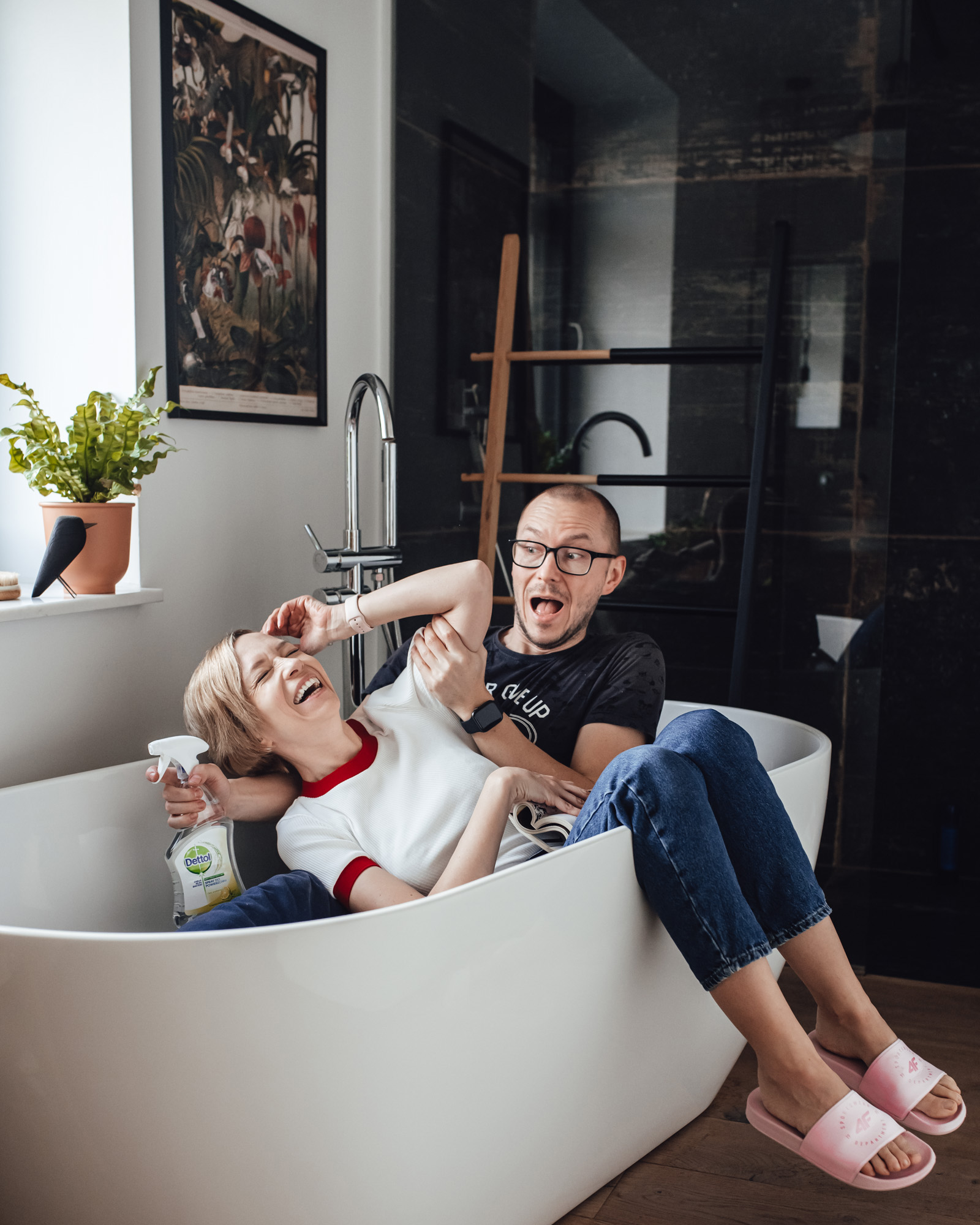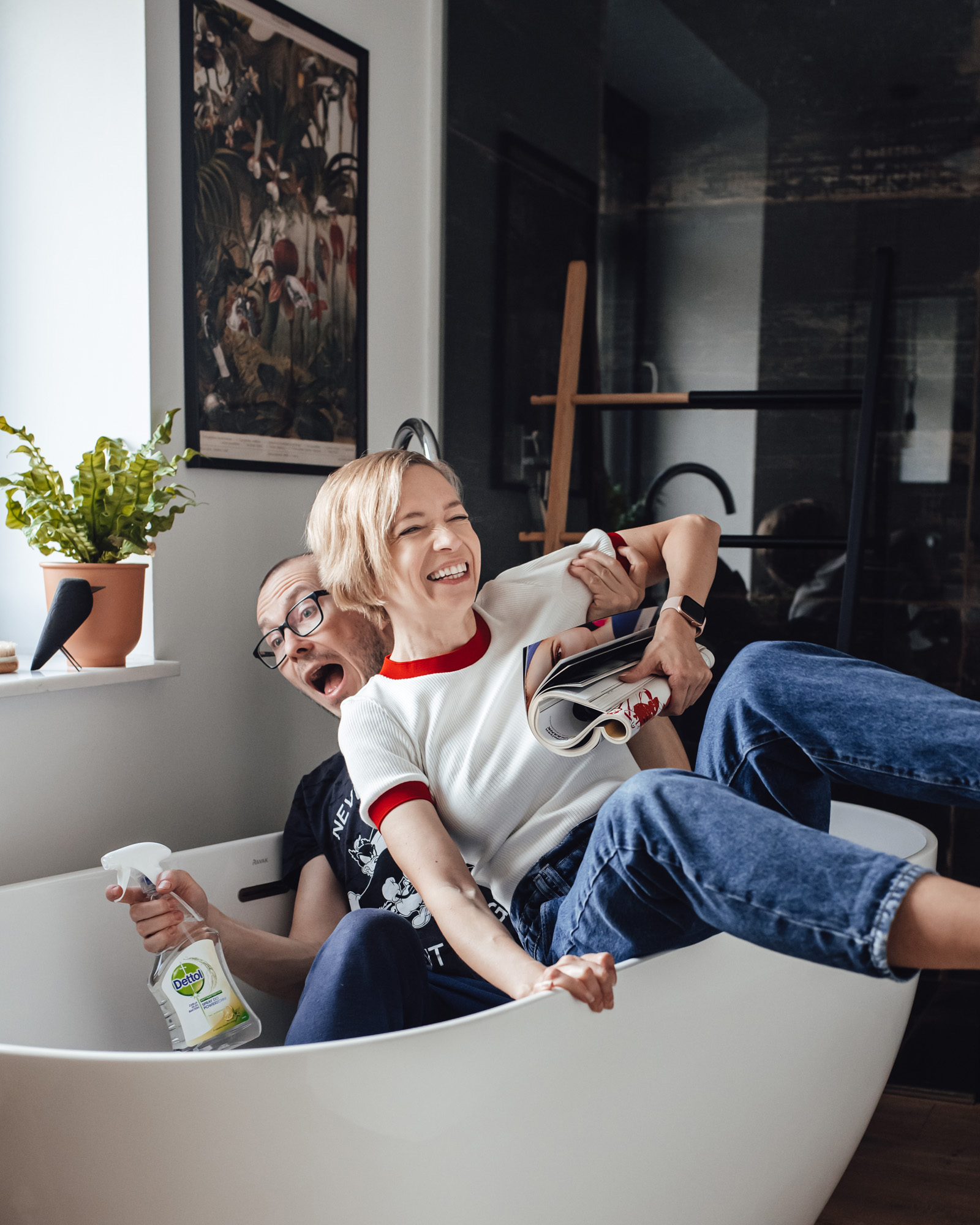 A potem po prostu daj się wykazać innym. Jeśli nadal się boisz, świetnym wynalazkiem jest antybakteryjny spray do powierzchni Dettol. Zamiast wielu produktów do sprzątania w szafce jest jeden, dzięki czemu po prostu nie da się wybrać źle. Poza tym Dettol czyści bardzo, baaardzo dokładnie. Kiedy po raz pierwszy go zobaczyłam, od razu pomyślałam, że to genialne rozwiązanie dla kobiet, które mają poczucie, że ogarniają najlepiej. Oraz panów, którzy zazwyczaj twierdzą, że właśnie przez to boją się przejąć stery :)