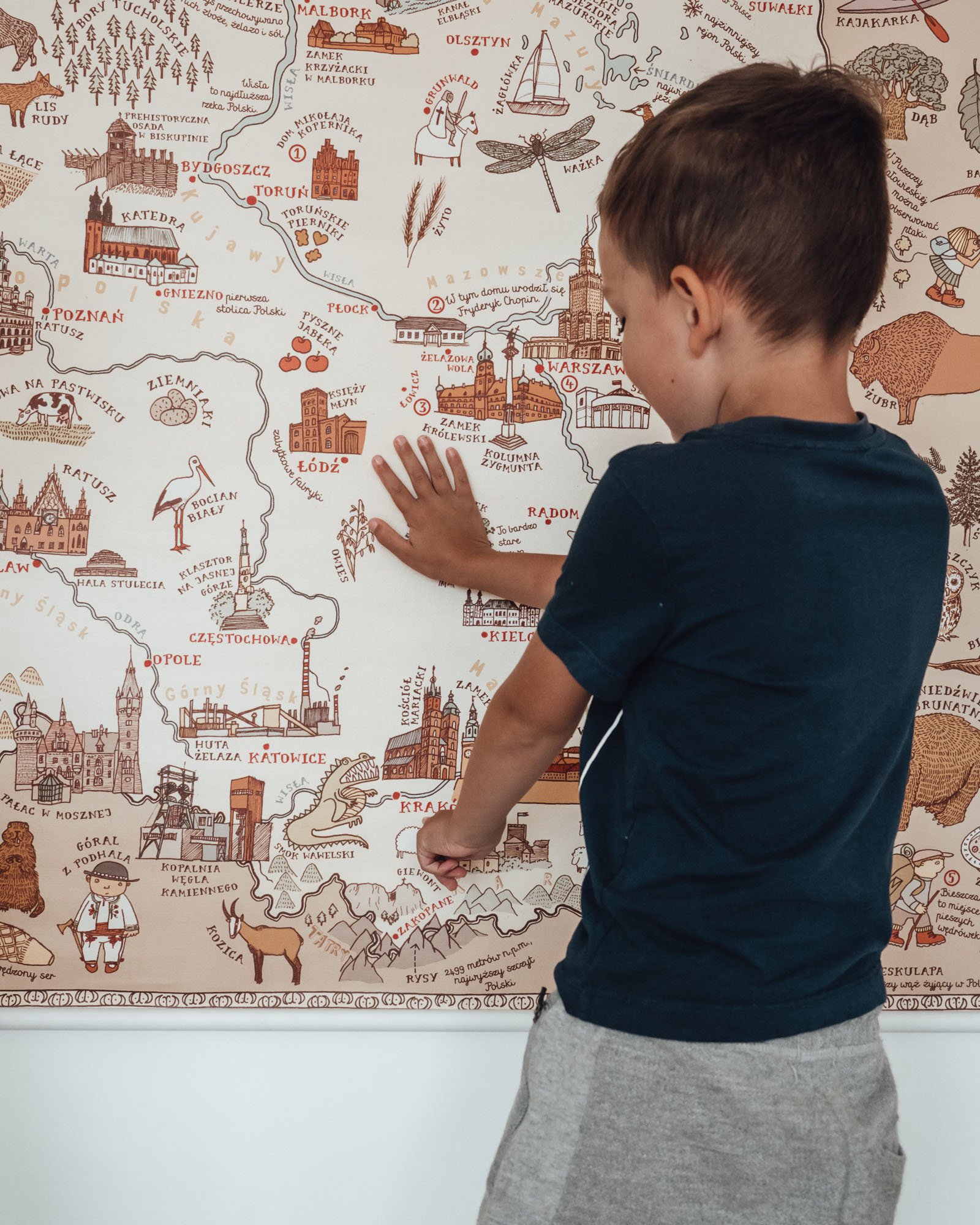 To smutne, że nasze dzieci latają w zagraniczne podróże, a nie znają swojego kraju. Kostek ma na ścianie w pokoju powieszoną wielką mapę Polski, ma też kolorowanki z polskimi zabytkami. Wie, co można zobaczyć w jakim mieście, gdzie był, a gdzie dopiero pojedzie.