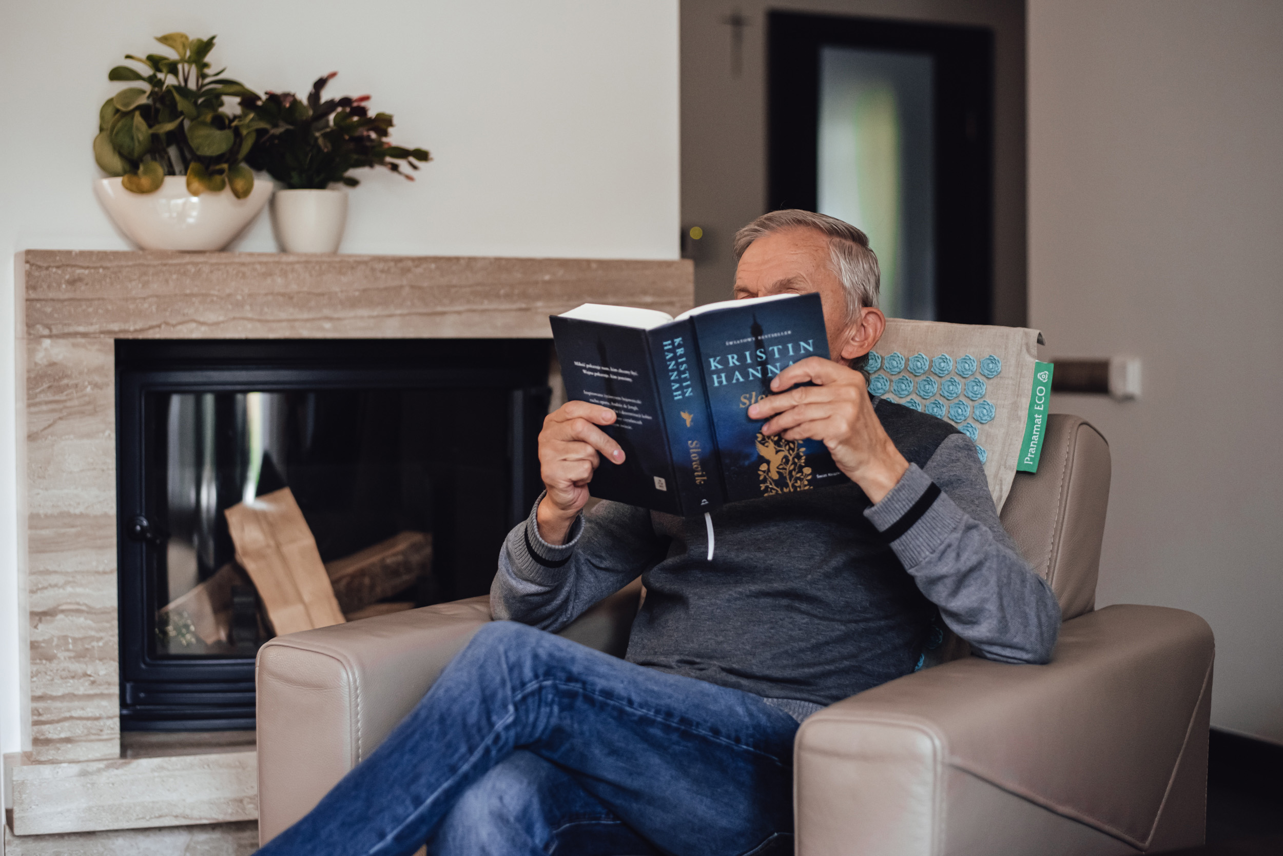 „Żona zabrała mi poduszkę, więc korzystam głównie z maty do masażu Pranamat ECO, na której siedzę wieczorami, oglądając telewizję czy czytając książki. Dzięki temu czuję się zrelaksowany i potem lepiej śpię.”