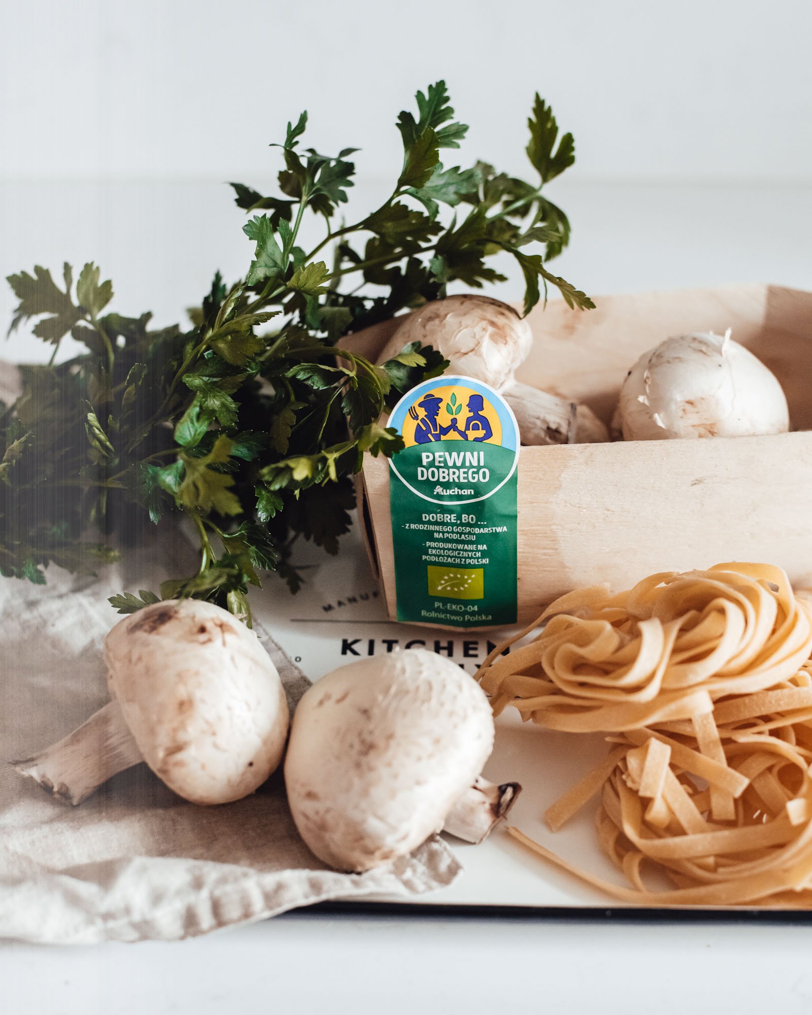 TAGLIATELLE W SOSIE PIECZARKOWYM Z ZIOŁAMI