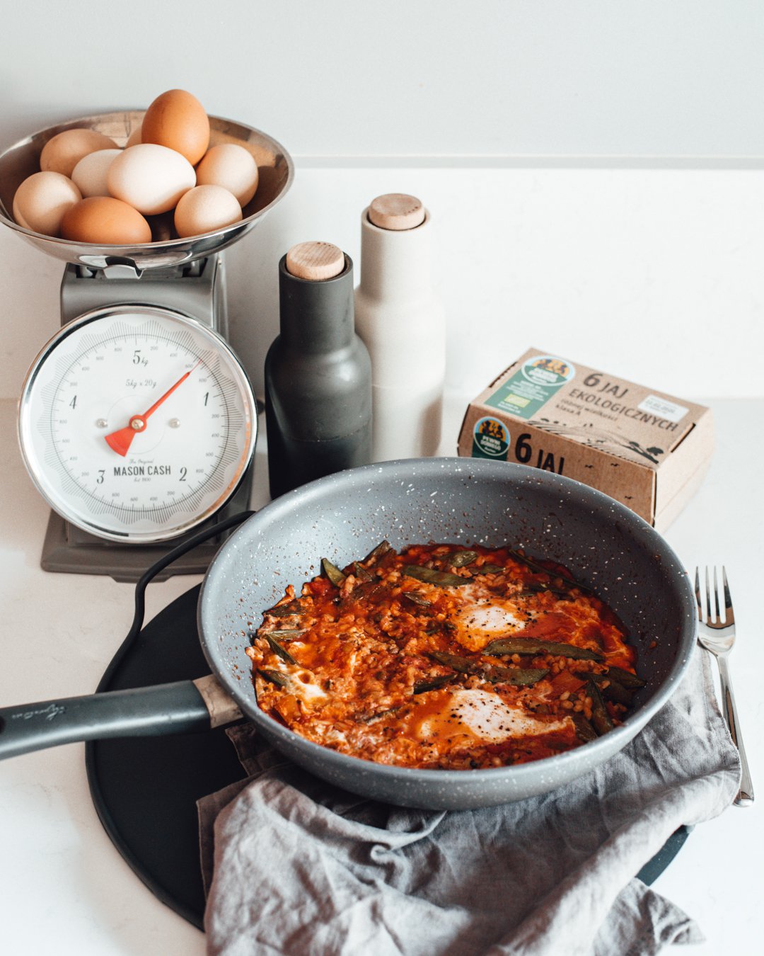 Moi rodzice na zupę warzywną mówili „wkoło ogródka”. Ponieważ ja nie mam grządek z warzywami, dania – do których wrzucam wszystko – nazywam „wkoło lodówki”. Moja szakszuka jest super, gdy w lodówce zalegają resztki jedzenia i nie wiesz, co z nimi zrobić. Robię ją też na kolację, gdy po obiedzie zostaje nam kasza.
