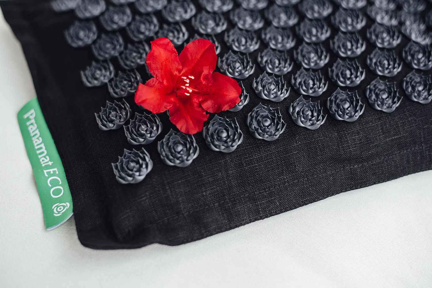 Gdy kładziesz się na zestawie PRANAMAT ECO, po całym ciele rozlewa się przyjemne ciepło. Spiczaste kolce lotosu wbijają się w skórę, poprawiając krążenie krwi, a to dodaje energii. Ale gdy leżysz na niej często, możesz leżeć coraz dłużej, bo ciało przyzwyczaja się do tej stymulacji. Dlatego wiele osób w trakcie musi przykryć się kocem, bo robi im się chłodniej. To oznacza, że ciało jest już odprężone.