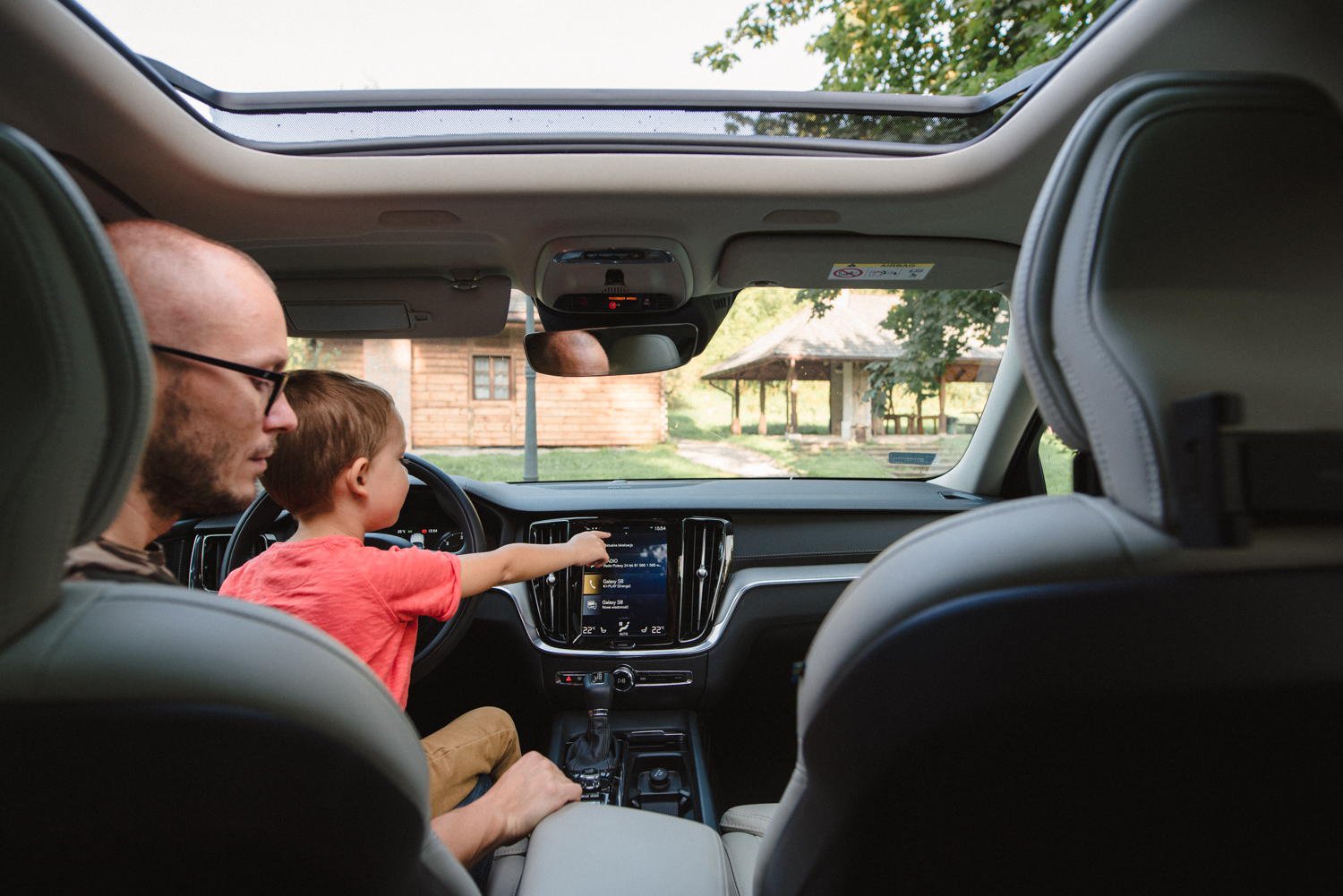 Kostek od małego uwielbia jeździć samochodem, zwłaszcza gdy sterowanie i nawigacją są tak intuicyjne jak w Volvo, że może sam ustawić przystanki :). Jednak Kostka średnio co dwie godziny musi rozprostować kości, inaczej wszystkim nam daje do wiwatu.